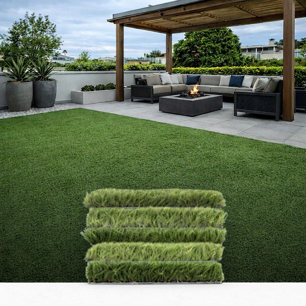 To measure the square footage needed for artificial turf, first treat the area as a square or rectangle. If the space has curves or angles, identify the widest and longest points, and adjust your measurements to ensure the entire area fits within a square or rectangle. Use the width and length of this square or rectangle to calculate the square footage of artificial turf required. Any excess turf around the edges of the desired shape will be trimmed during the installation process.